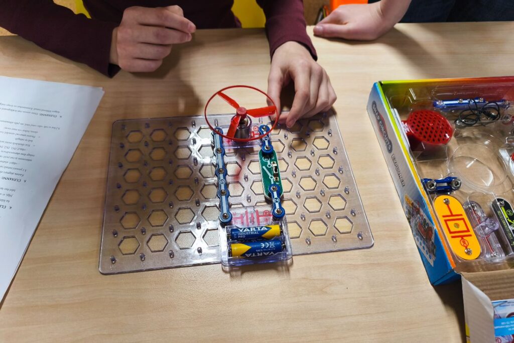 Tänaseks on toimunud 1. mooduli kaks esimest paaristundi. Neist esimeses õppisid õpilased koostama elektriskeeme ja nende abil erinevaid ülesandeid lahendama. Teises tunnis ehitati spagetisilda, mille ülesanne oli vastu pidada võimalikult suurele koormusele.