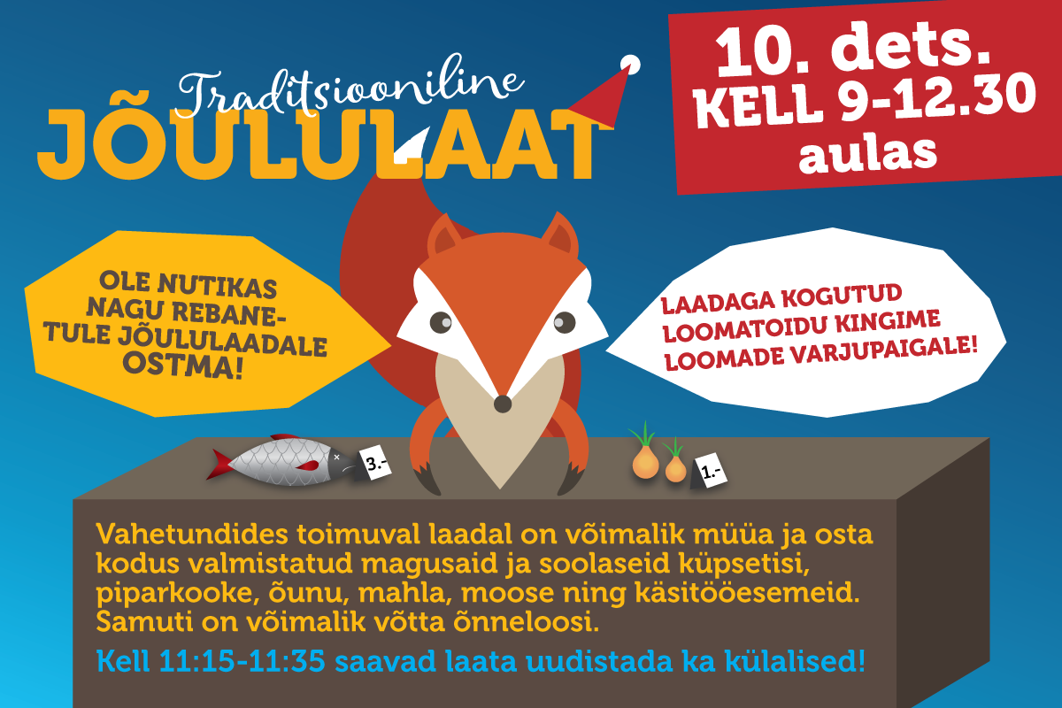 Laat algab kell 9:00 ja kestab kuni 12:30ni. Vahetundides toimuval laadal on võimalik osta kodus valmistatud magusaid ja soolaseid küpsetisi, piparkooke, õunu, mahla, moose ning käsitööesemeid. Samuti on võimalik võtta õnneloosi. Kell 11:15-11:35 saavad laata uudistada ka külalised!